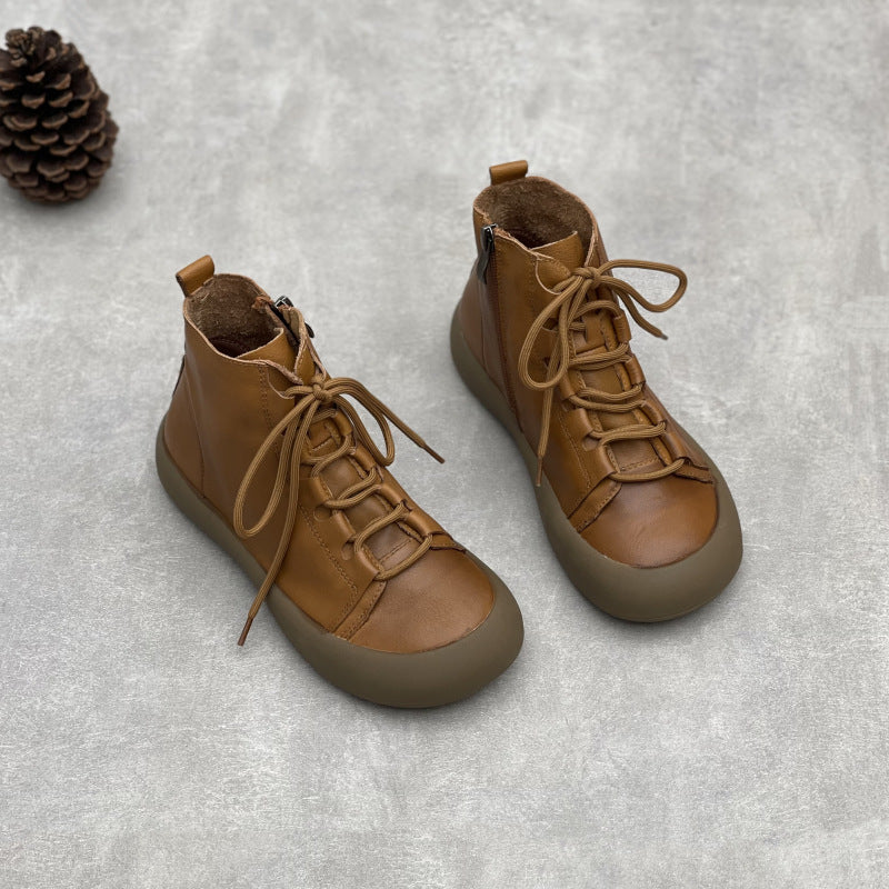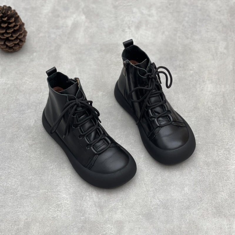 Comfortable Leather Zipper Ankle Boots – Women's Casual Short Shoes