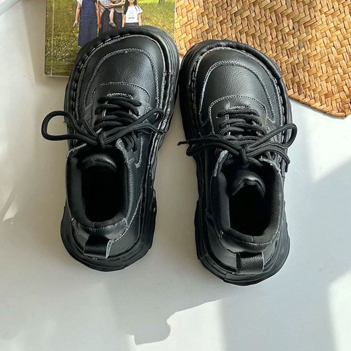 Women Leather Platform Casual Lace-up Boots Chunky Ankle Boots – Ugly-Cute Style
