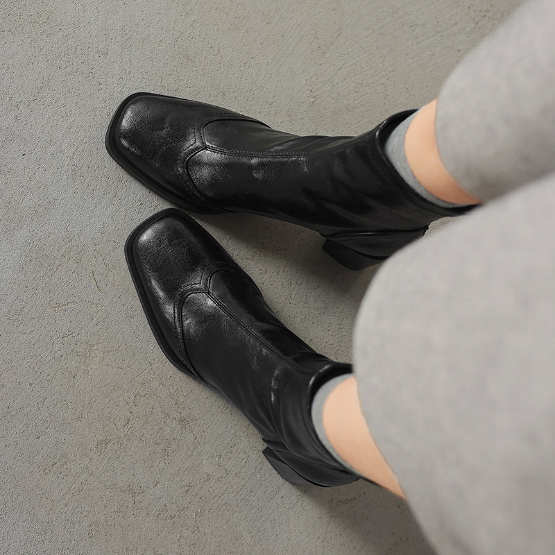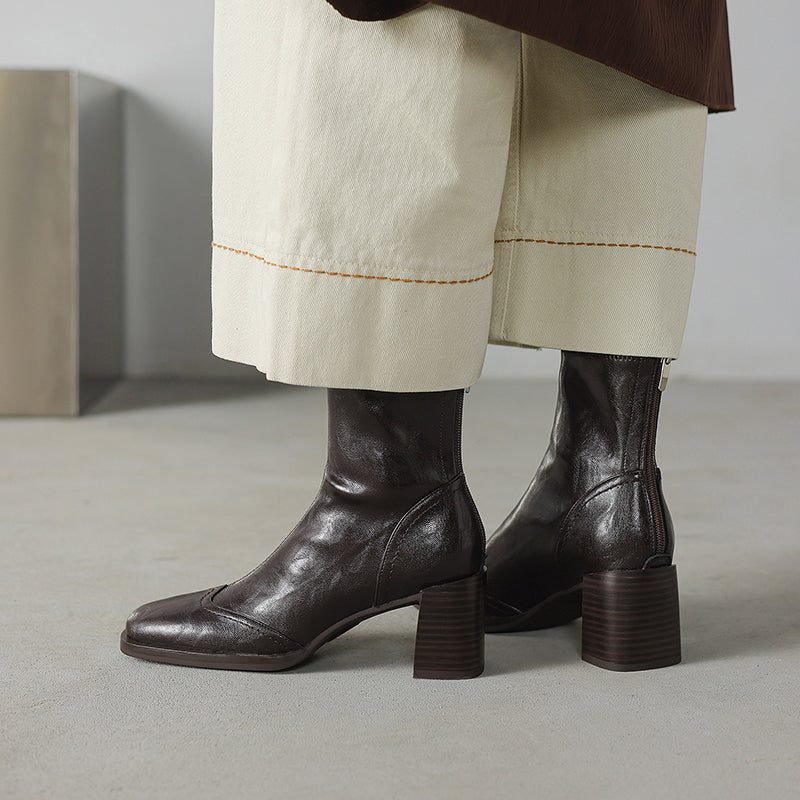 Women’s Square Toe Block Heel Ankle Boots – Stylish Back Zip Design