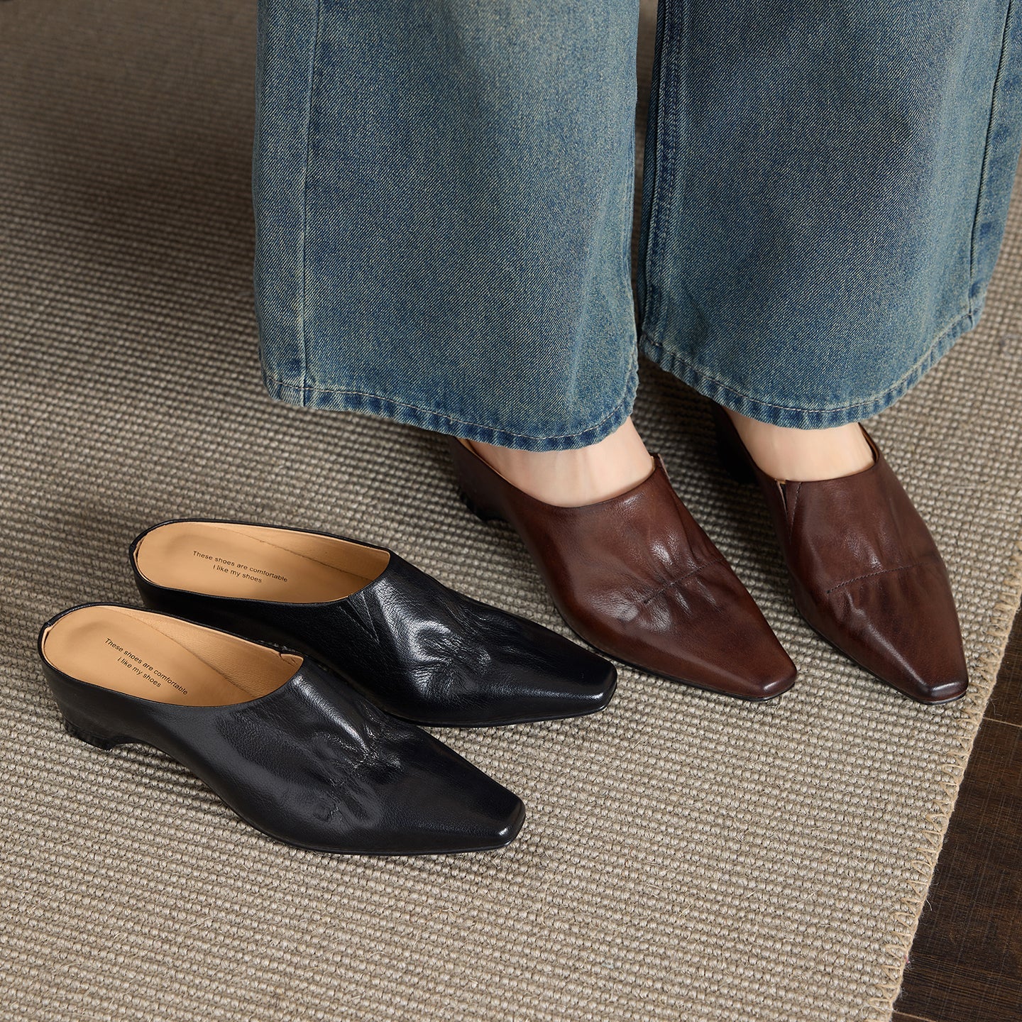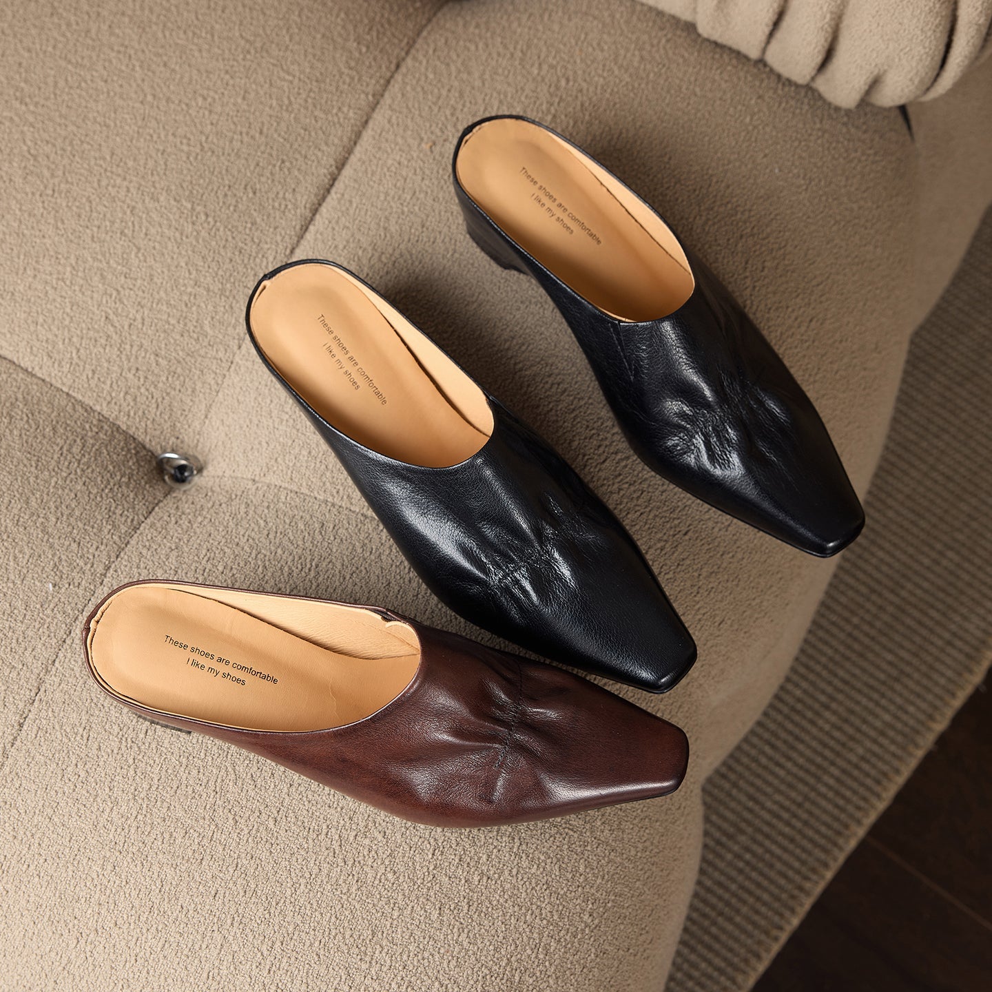 Elevate your summer style with these first-layer cowhide mules. Featuring a sophisticated narrow square toe and an artistic center ruched upper, these sandals perfectly blend modern architecture with timeless comfort. The premium interior is fully lined with breathable pigskin and a cushioned cowhide insole, providing an ultra-soft and dry experience for all-day wear. Set on a stable 5.0cm wedge heel with a durable TPR outsole, these elegant Black or Brown slip-ons are the perfect choice for professional office looks or polished casual weekend attire.