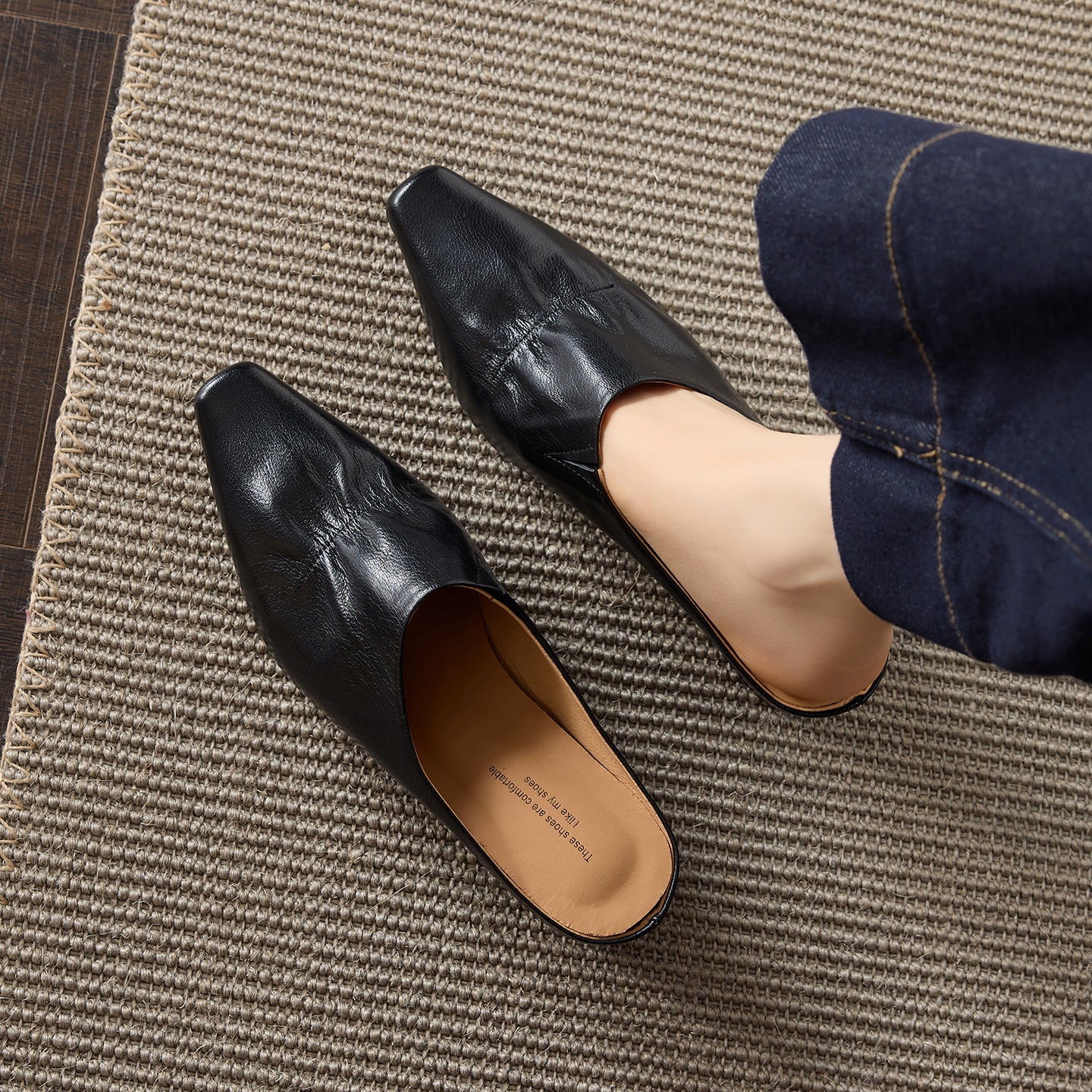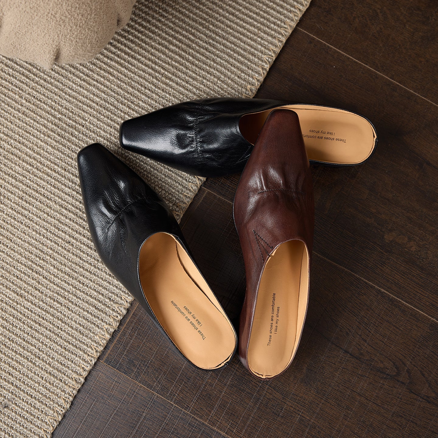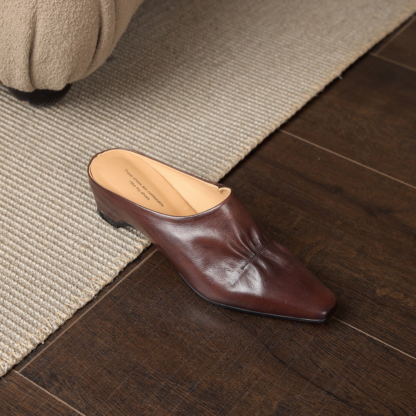 Women's Leather Ruched Square Toe Mules Minimalist Wedge Sandals
