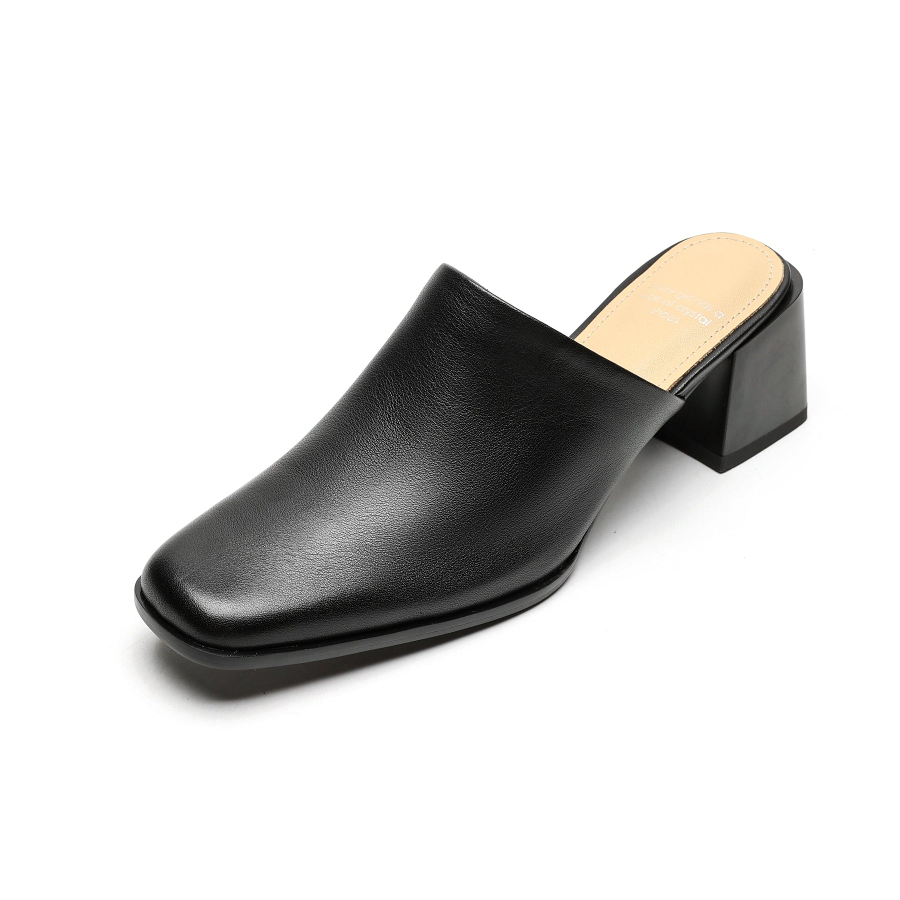 Women's Minimalist Square-Toe Leather Slides - Luxury Office Mules - Comfortable 5.5cm Heels