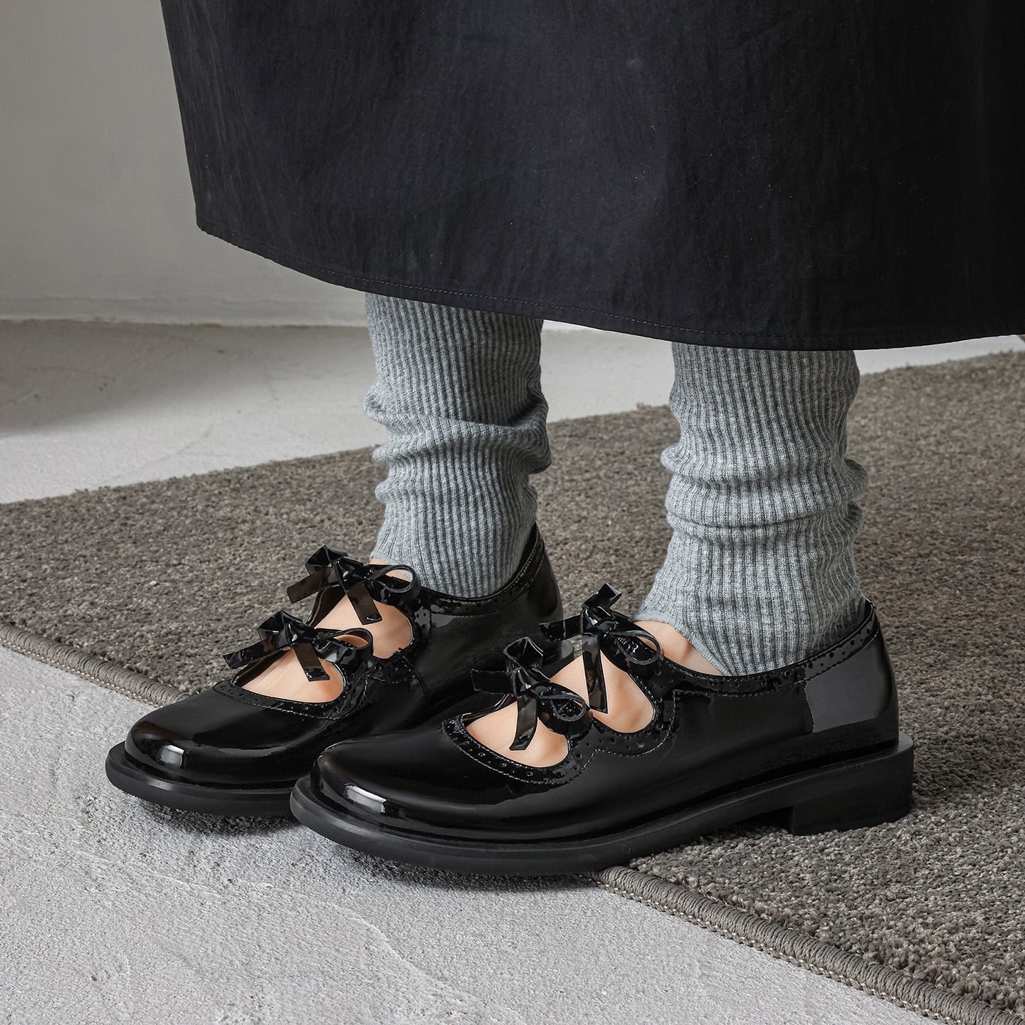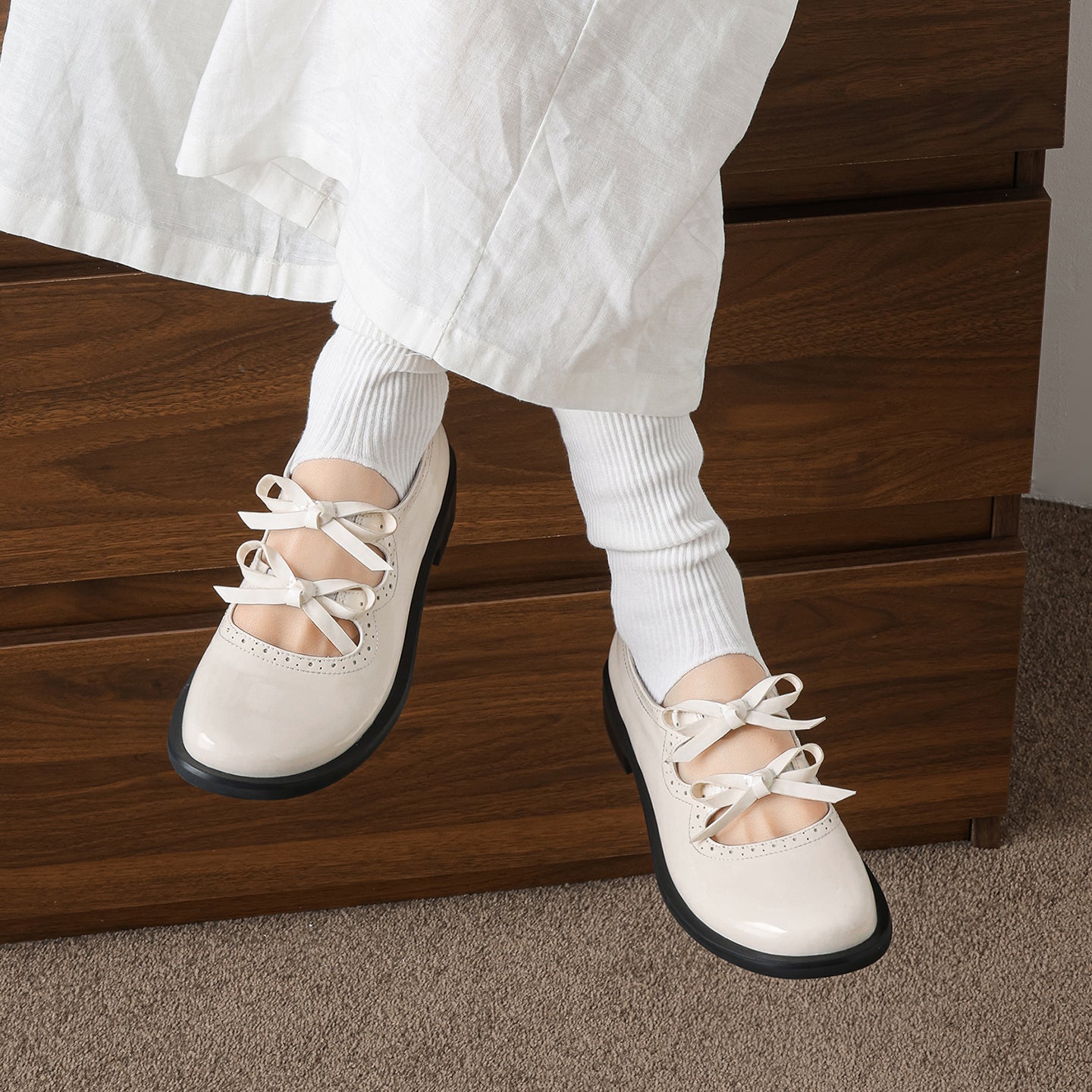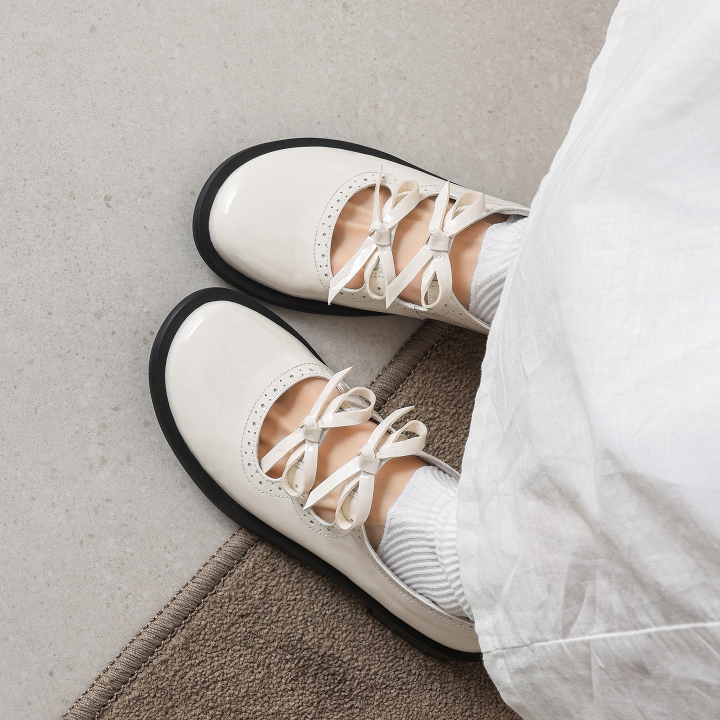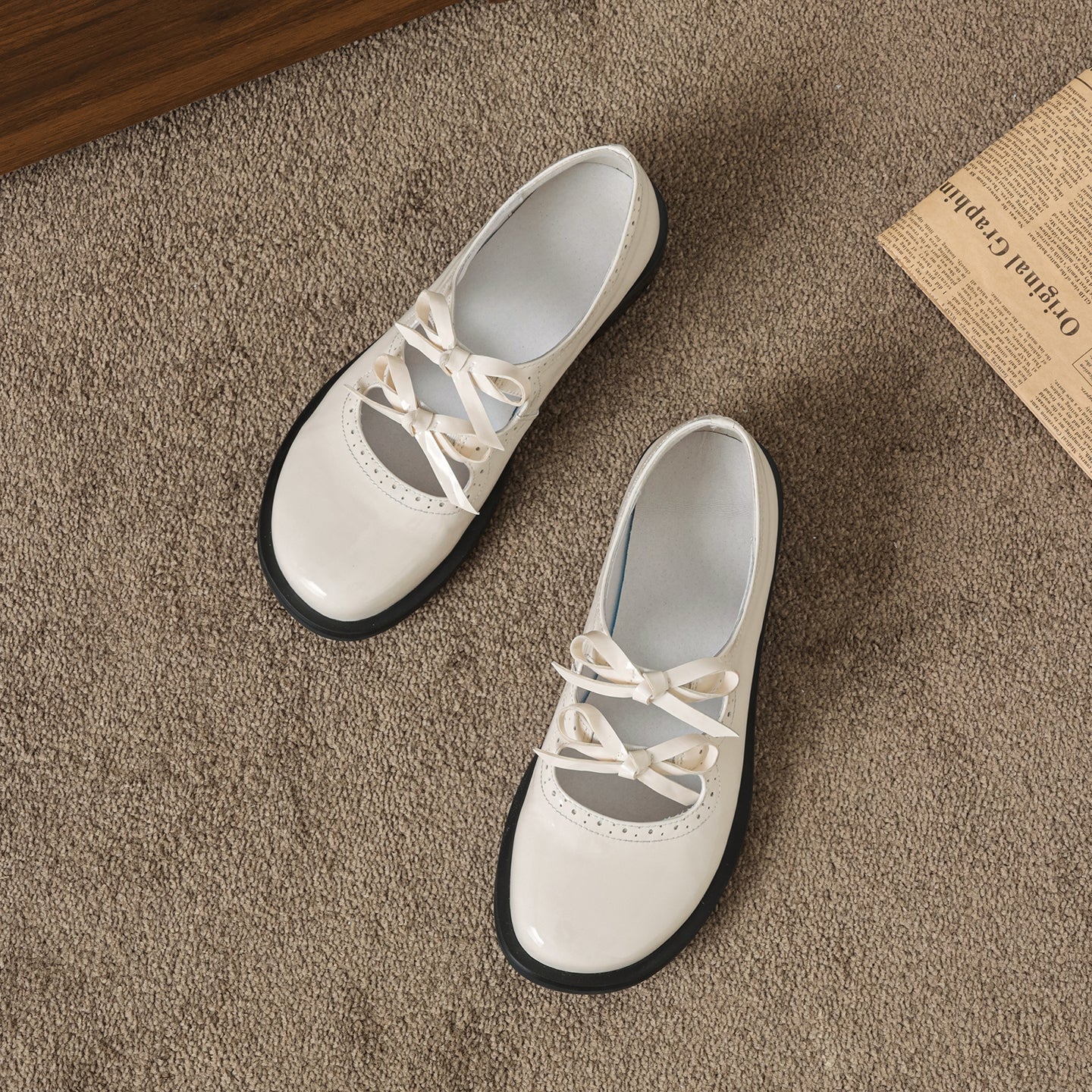 Step into a world of charm with these first-layer cowhide Mary Janes. Featuring a delightful double-bow design and intricate scalloped cut-out detailing, these flats perfectly embody French vintage sweetness. The interior is crafted for all-day freshness, featuring a breathable pigskin lining and a soft pigskin insole ideal for Spring and Summer. Set on a practical 1.0cm flat heel with a non-slip rubber outsole, these Black or Beige leather shoes offer the perfect mix of whimsical style and grounded comfort for everyday elegance.