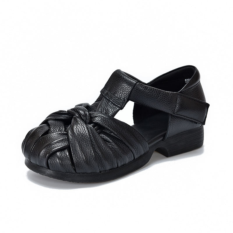 Experience the perfect blend of tradition and modern comfort with these handcrafted woven sandals. Made from premium first-layer cowhide with a unique cut-out design, these shoes feature no lining to ensure maximum breathability for the summer heat. The soft pigskin insole and durable 3.0cm rubber outsole provide all-day support, while the adjustable Velcro closure offers a secure fit. A versatile, artistic addition to your casual wardrobe in classic Black, Coffee, or Caramel.