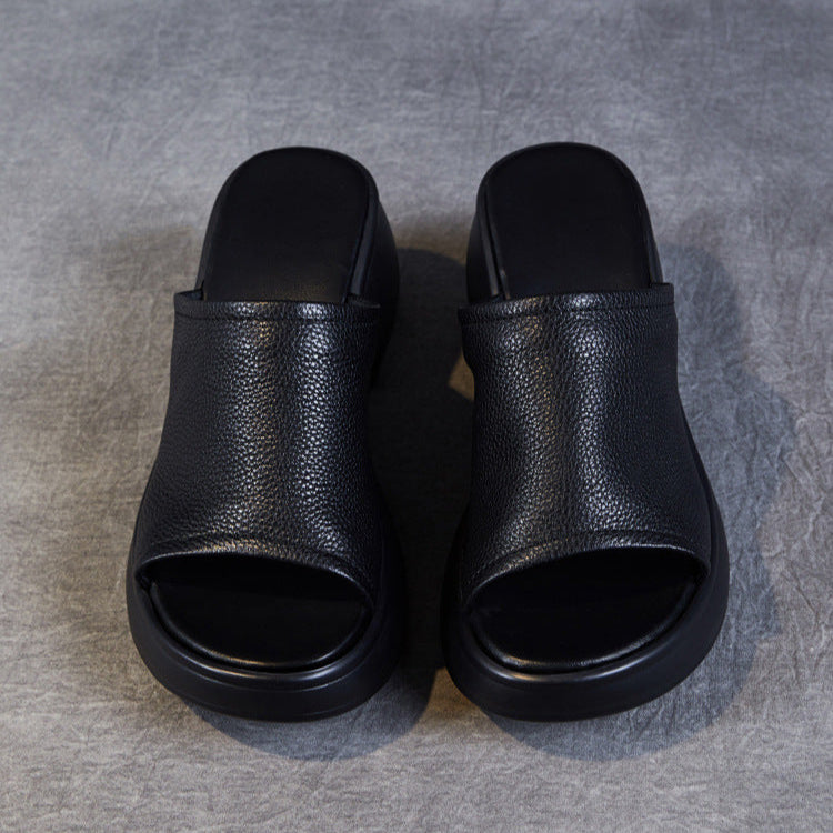 Women's Summer Open-Toe Chunky Heel Platform Mule Sandals – Soft Leather
