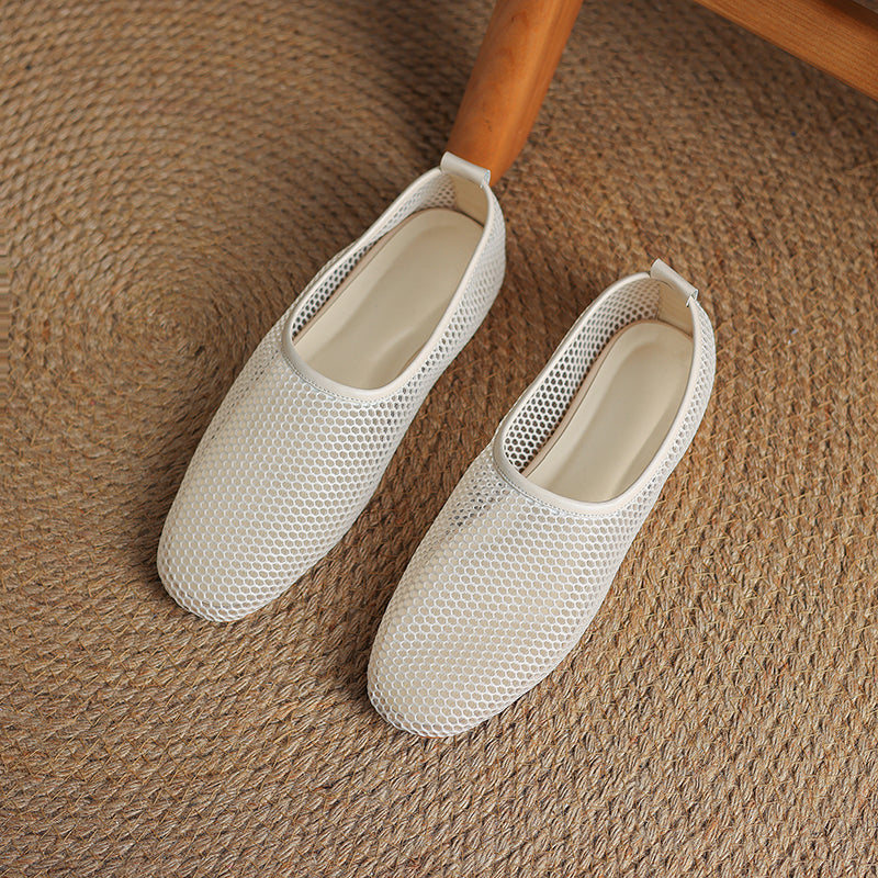 Minimalist Mesh Ballet Flats for Women - Breathable Cowhide Summer Shoes with Lambskin Insole
