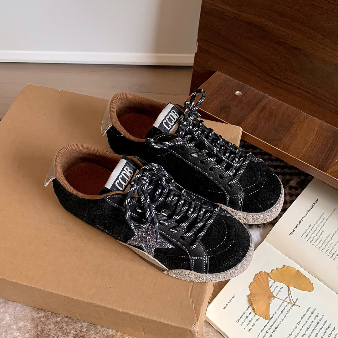 Flat Star Design Sneakers Retro – Women’s Cow Suede Lace-Up Shoes