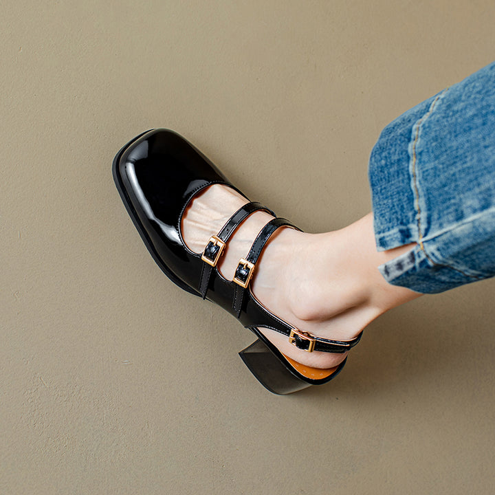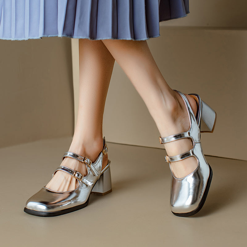 Womens Square Toe Block Heels Slingback Shoes