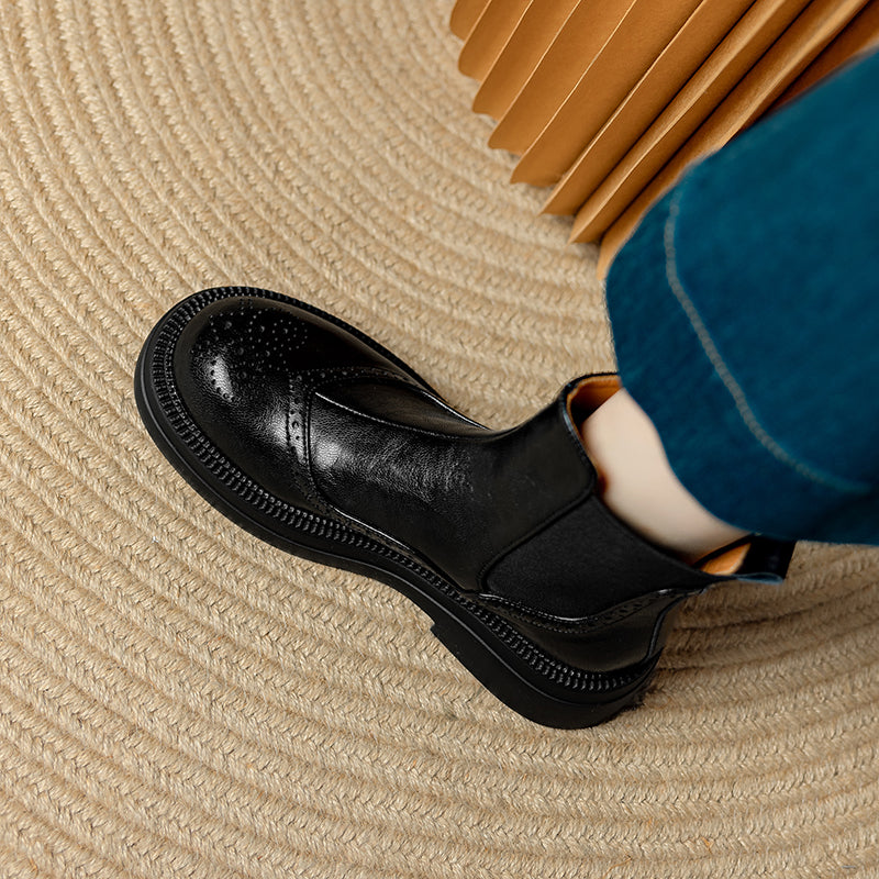 Stylish Women's Leather Brogue Platform Chelsea Boots – Ankle Height