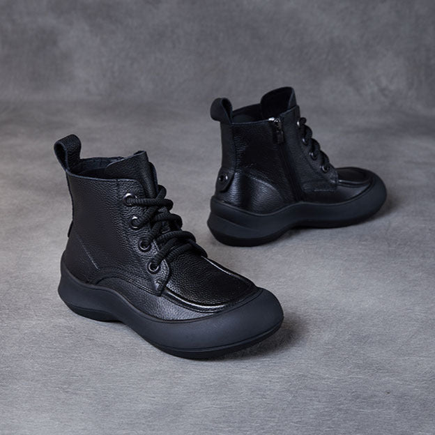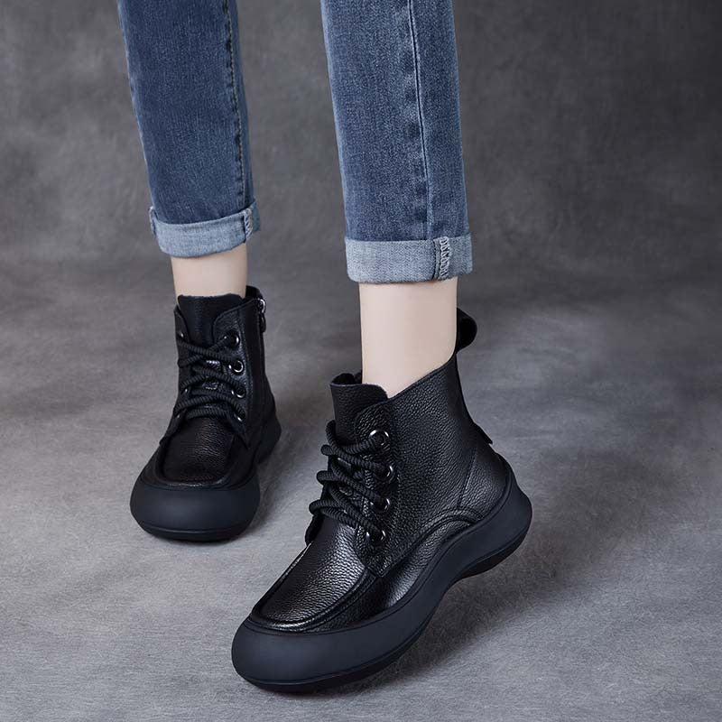 Women's Leather Platform Boots – Comfortable Casual Lace-Up Ankle Shoes