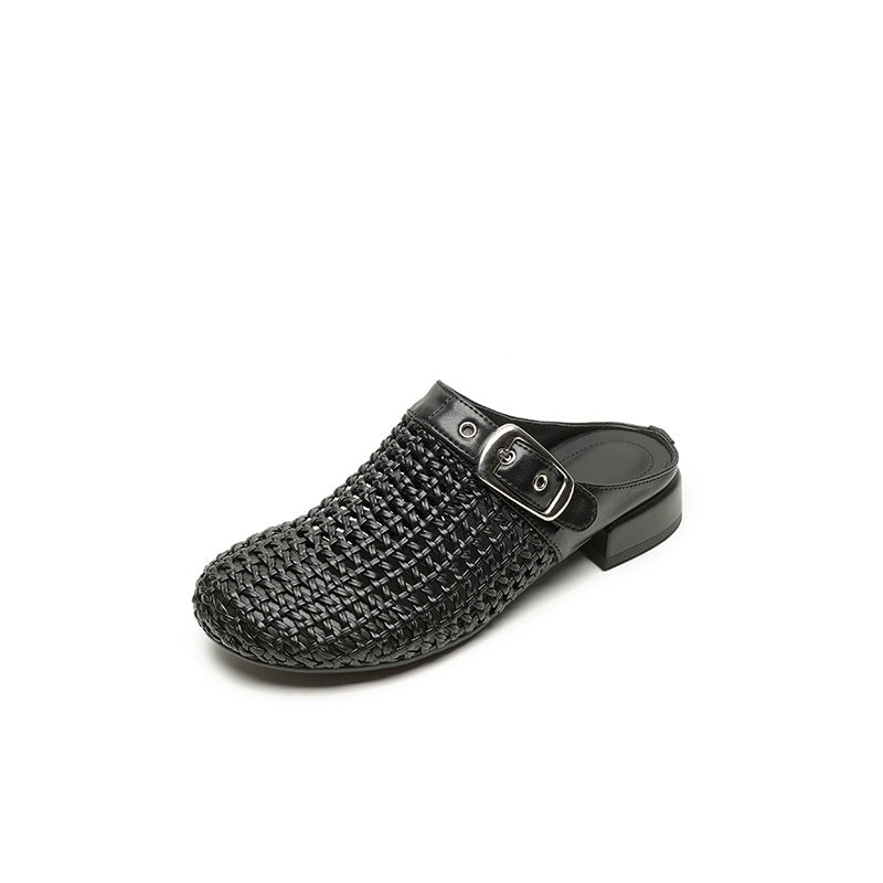Womens Leather T-buckle Mules Summer Mray Jans Shoes