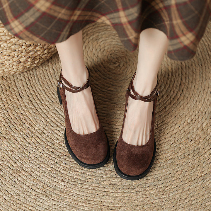 Cross Strap Chunky Heel High Round Toe Mary Jane Women's Shoes