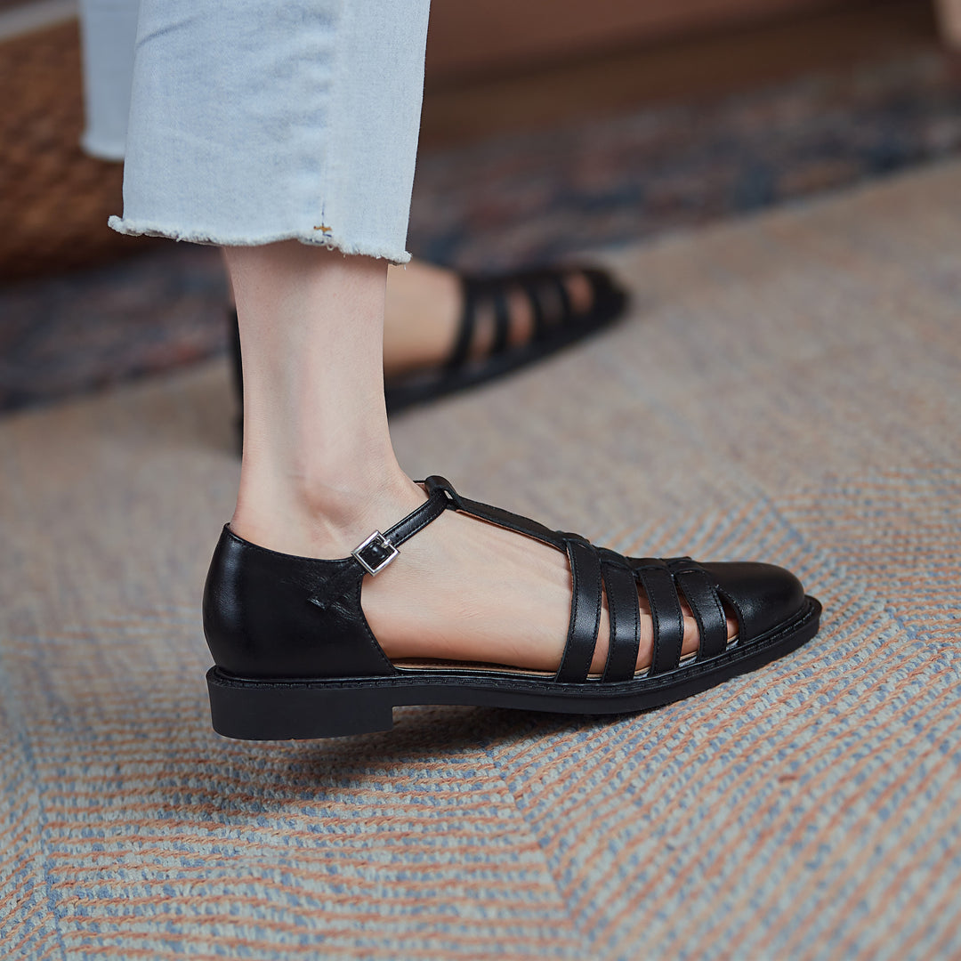 Womens Leather Fisherman Braided Flat Sandals Closed Toe